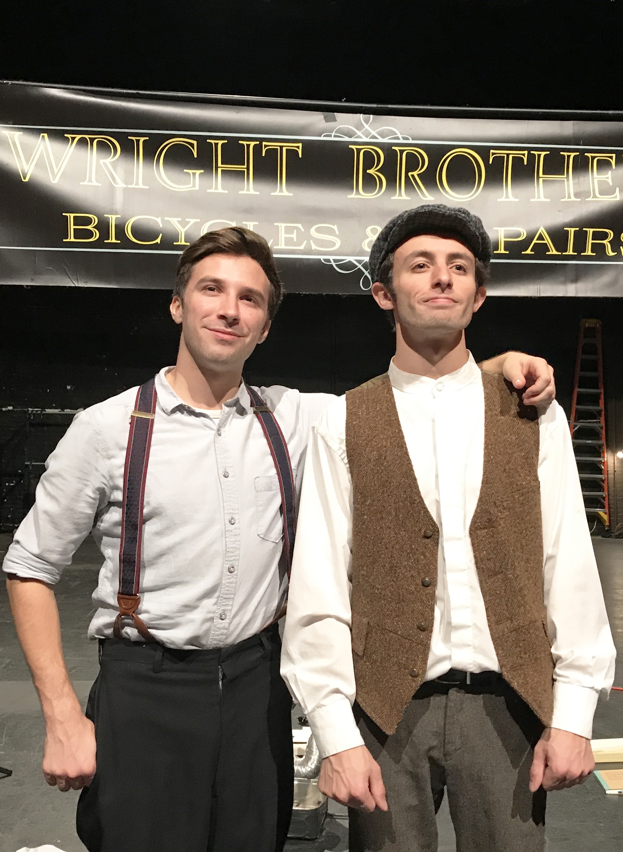 Those Daring Young Men & Their Flying Machine! A Musical Play to Inspire You to Achieve Your Dreams Against Impossible Odds Book by Sterling Swann Music & Lyrics by Larry Siegel Wright Brothers Performance & Touring History "This musical takes off in its first moments and continues to soar!" Emma Laurence Department of Theatre, Dance and Film Studies The Horace Mann School, New York City "We presented the Wright Brothers as a school time matinee and it sold out immediately. The cast was fun and easy to work with, and the comments from the schools were excellent." Joe Konrad Executive Director Schauer Arts Center, Hartford, WI "The Wright Brothers provided a wonderful stage depiction of aviation history. The production effectively channels the personas of Orville and Wilbur Wright in a musical format both entertaining and factually accurate. Fresh Brewed Productions' original script meets curricular objectives as evidenced by our two school presentations nearly filled to capacity. I would recommend this production for similar presenter school series." Thomas J. Robbins Executive Director, Heritage Center University of Dubuque ![]() "I loved the music, and the talent was fantastic! Great voices, wonderful acting by all" "The talk-back with the cast was superlative! It was intimate, informative and inspiring! I would recommend it to other presenters if time and conditions allow." Mary Katz Director of Education The Carson Center, Paducah, KY